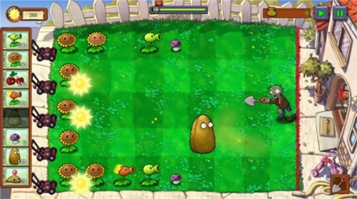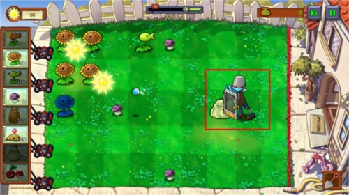 2、选好之后就可以开始放置植物了,这里建议多放些向日葵,不过在《植物大战僵尸:重生》里,一个阳光的数值是50!这也降低了游戏难度!