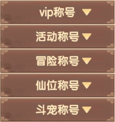 目前游戏中的称号存在差异,具体可分为vip称号、活动称号、冒险称号、仙位称号和斗宠称号。不同类型的称号获取方式各不相同,下面为大家举例说明。