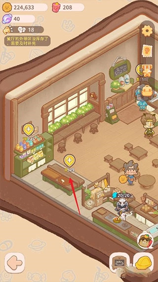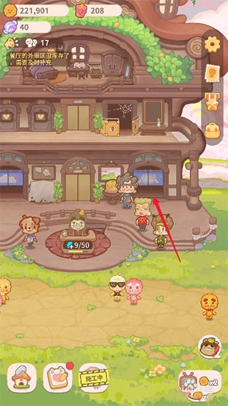(5)自动招揽客人:当遇到带有两个饼干人图案的图标时,系统会自动招揽一小批客人;若遇到类似飞机形状的图标,则会自动招揽一大批客人(这些自动招揽来的客人头上会带有小旗子标识)。