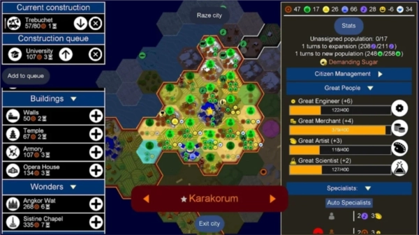 快乐值:当快乐值降到0以下时会引发暴动!可以通过建造马戏场、竞技场,或是与商业城邦结盟获取奢侈资源(像葡萄酒、香料这类)来提升快乐值。