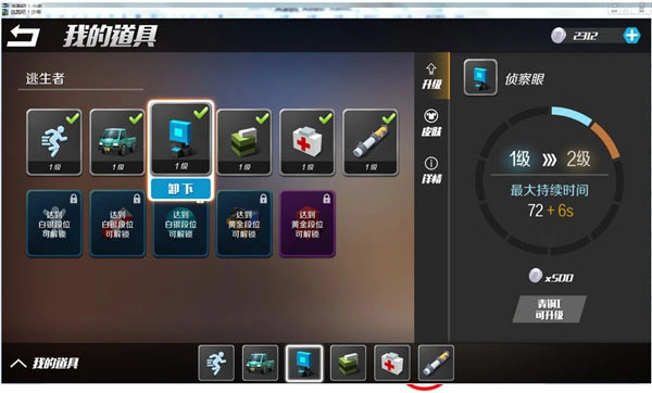 3、当前达到白银段位可解锁“跳高”“生命上限”“雷达”三张道具卡,黄金段位则能解锁“巡逻犬”“阻挡箱”两张道具卡。