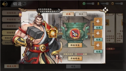 当主城等级提升至6级且解锁工坊后,即可前往工坊,消耗基础资源来锻造武器与防具。