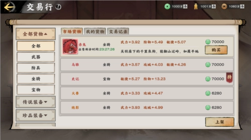 各位将军或许都碰到过这样的困扰:自己好不容易得到一件强力装备,却和麾下武将不太匹配。用起来效果平平,弃之不用又总觉得可惜。因此我们在游戏里新增了“交易行”功能,允许玩家自由交易装备,这样就不会再让极品装备闲置无用了。