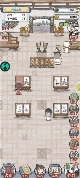手动创作玩法能让你亲自体验古画的制作过程,墨竹图、秋菊图、虾戏图、鸳鸯图、骏马图等数十种名画类别可供选择创作。每次创作的效果可能因你的技艺水平和状态而有所不同,随着创作进程的深入和绘画技艺的提升,还能逐步解锁更多有趣的名画进行绘制。要是你觉得手动创作比较麻烦,想把时间花在经营上,也可以使用自动创作功能。