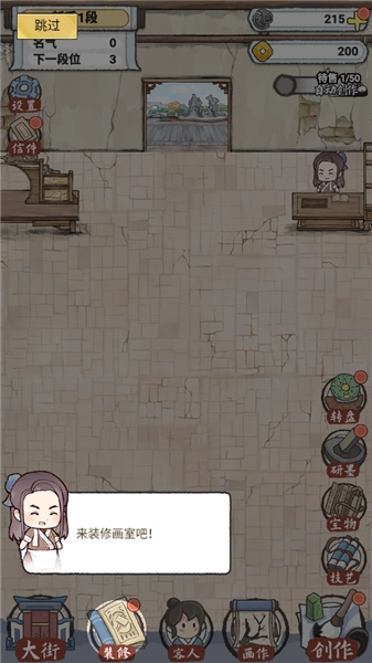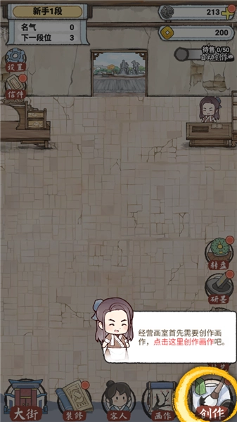 1、进入后,你需要经营一家画室,经营画室的首要任务是创作画作,点击右下角的“创作画作”按钮即可开始。
