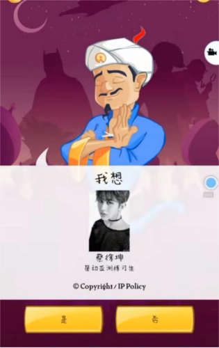 3、总共有7个问题,等你把这些问题都回答完,神灯就能猜出你心里想的那个人物了。