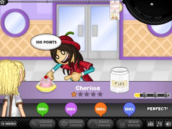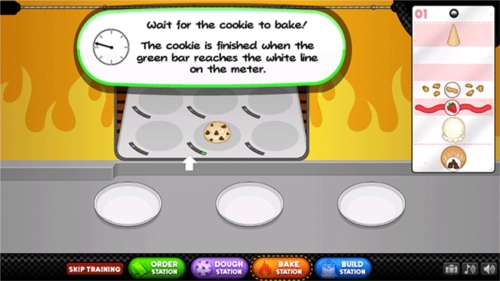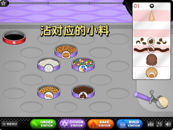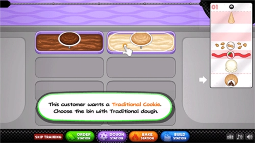3、接下来就正式进入饼干制作环节啦,点击“doughstation”,这位顾客想要的是传统饼干,所以要选择装有传统面团的垃圾桶。