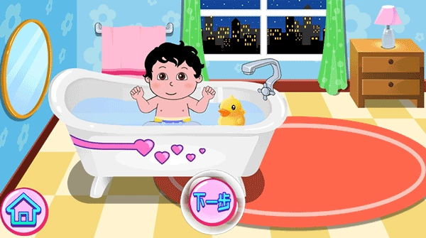 《贝贝照顾婴儿宝宝》是一款可爱卡通风格的亲子互动模拟游戏。游戏不仅有模拟洗澡环节,还包含穿衣、喂食、哄睡、换尿布等贴近生活的内容,能让低龄儿童在趣味体验中直观了解各类生活常识与清洁步骤。在洗澡环节,孩子需要按顺序完成冲淋、涂抹沐浴露、冲洗干净、擦干身体等流程;穿衣时要区分上衣、裤子、鞋子的正确搭配;喂食则需选择适合婴儿的软烂食物,避免呛咳;换尿布时要掌握简单的更换步骤。每个环节都贴合真实照料逻辑,没有复杂设定。