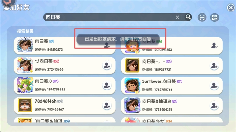 3、搜索到之后,点击添加,然后等对方同意即可
