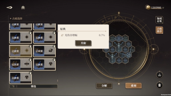 4、古痕生成时会自带1条随机属性,玩家可选取同名古痕进行合并(最多合并2次),合并后的古痕能够通过反向拆解来进行调整。
