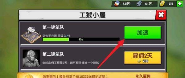 消耗钻石加速:当所需道具不足时,玩家可选用内货币“钻石”来完成加速操作。钻石加速的时长以及消耗的钻石数量均与建筑等级挂钩,建筑等级越高,对应的钻石消耗量就越大。