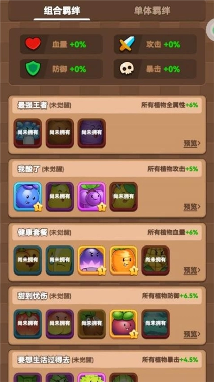 这里提供组合羁绊与单体羁绊两种类型,玩家能够快速解锁相关属性。