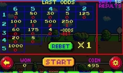 连续在10到1000倍率的大分马上各押一注,总共押5次。要是其中有一次开出10或者100的结果,就按下面的方式操作:如果开出的是10,那下一次就把100倍率的马押满,这样就能中奖;之后的四局可以在任意倍率上押任意分数,等到第五局时,再把100倍率的马押满,又能中奖!!!按照这个规律重复下去,就能实现爆机。