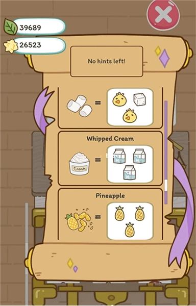1、如图所示,只需把制作食物所需的物品放在一起,就能生成新的食物配方。
