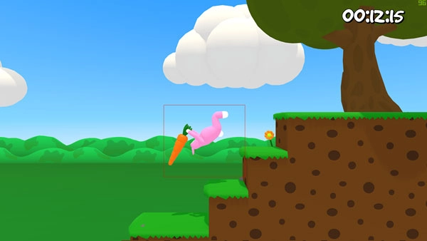 6、接着让自己的图纸滚到目标位置,再按下跳跃键(也就是抓取键)。只要玩家操控的兔子抓住的是萝卜的根部或尾部,就能把萝卜抓起来,之后一直按住该键就能将萝卜握在手中,此时随意翻滚也不会有任何问题。