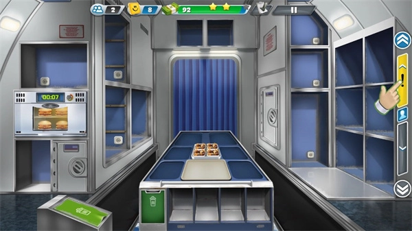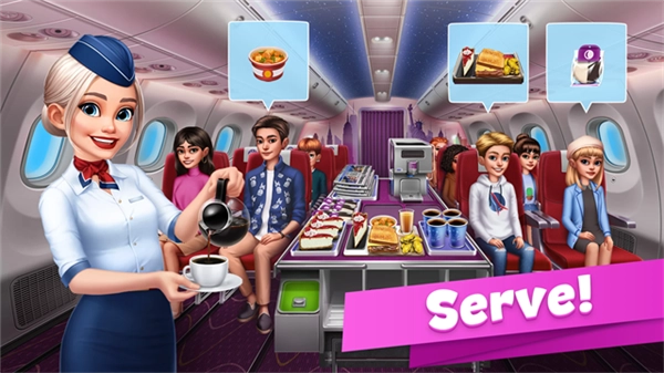 1、烹饪美味的餐点与甜点,并在这款极易让人沉迷的时间管理烹饪游戏里,将它们供应给商业航班。