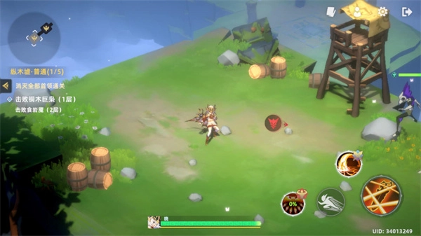3、进入关卡后,左侧用于控制角色移动,右侧则对应角色的普通攻击、闪避动作以及技能释放。