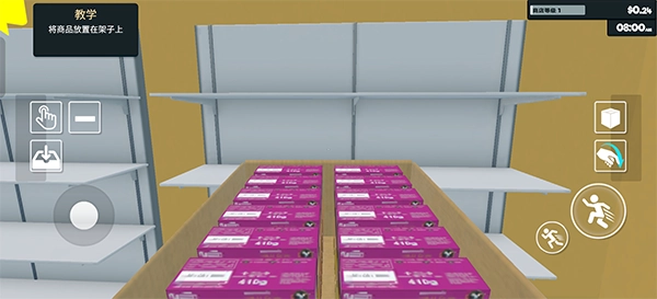 5、在架子附近,我们点击小手两次就能把商品放进架子里。