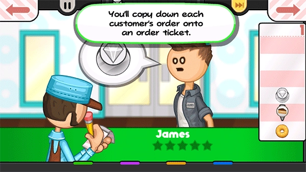 1、首先玩家要为顾客点餐,等顾客选好想吃的甜甜圈品种后,就可以着手制作对应的甜甜圈了。