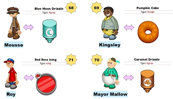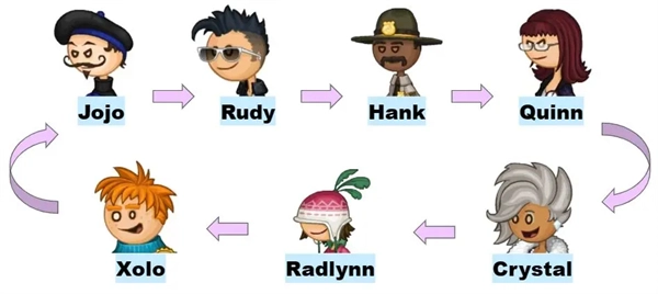 按照“最后一位顾客(closer)”的顺序表(见下图)来确定两人需要到达的日子。到达对应的日期后,先暂停进入顾客信息界面,查看该顾客的点单内容。之后一开始就把面包炸好,等接到第六位顾客的订单后立刻制作,制作完成后再进行接单并马上提交,按照这个流程操作就能达成成就。