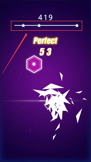 3、接着上方会接连不断地掉落音符块,当这些音符块下落到白线位置时,玩家的准星刚好碰到它,就能得到对应的评分与分数。