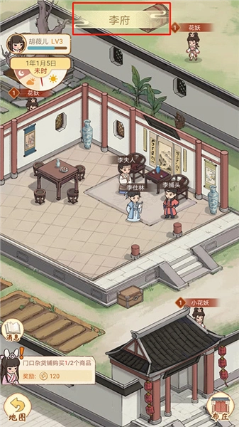 12、进入李府界面,可进行相关的任务和探索,