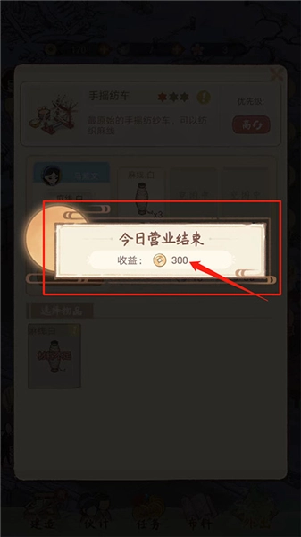 16、如图所示,当界面上出现【今日营业结束】的提示以及具体的【收益数】时,就意味着布庄的一天经营结束了,以上便是胡记布庄的详细攻略内容。