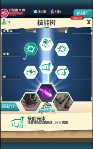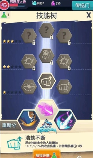 6、怪物(技能)升级。当邪恶度提升时,可获取技能点用于提升怪物的等级以及怪物的技能。
