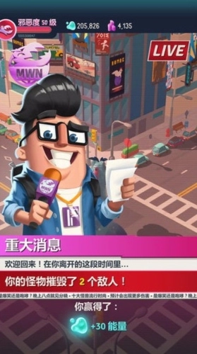 1、玩家的怪兽升级速度和体型变化,取决于拆楼砸墙的持续程度与破坏规模——毁掉的东西越多,怪兽升级就越快,个子也会愈发庞大,最终成长为巨无霸形态。