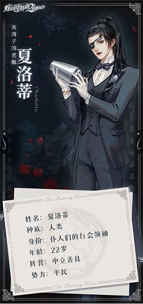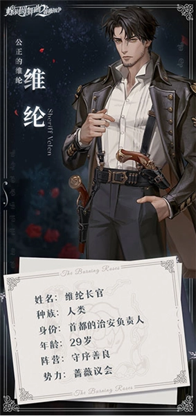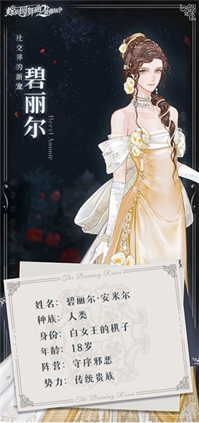 若泽·佛利兹身为蔷薇议会的议长,是所有渴望获得女王陛下青睐之人首要的拉拢目标。他代表白女王接待来自全国的贵族,无论对方是否为人类,也无论场合是在光彩夺目的王廷,还是幽深隐秘的地宫。他性格沉稳、理智,对待职责始终尽心尽责。无论贵族们如何对他百般讨好,他都不为所动,那份正直甚至显得有些刻板。直到某一天,他在一位少女的身上,窥见了未来的模样。