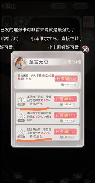 另外,这张《少女的口无遮拦(名字记不太清了)》我个人觉得挺好用的,虽说它的主技能是“清纯”相关的描述,但技能1和3都是无属性的。