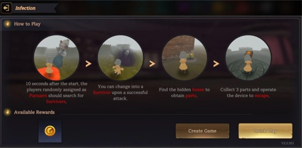 2、感染模式-PvP个人匹配(2名老奶奶/寻求者与6名桃乐丝/躲藏者)