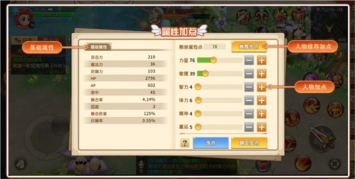 10、37级人物解锁自由属性加点功能,你既可以按照个人习惯手动分配点数,也能直接点击推荐加点实现一键配置,挑选最契合自身需求的加点方案吧。
