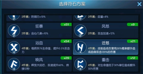 不同的符文套装带来的技能不同,不同的英雄带符文