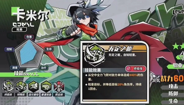 技能方面,大招“无定之躯”能对敌方单体造成400%以上的高额伤害,同时100%眩晕目标一回合,并降低其20%免伤率,为队友本回合的后续输出铺路。此外,他与雷狮可相互辅助:被动技能“觉悟”让角色攻击时额外附加35%真实伤害,若队伍中有雷狮,还能再提升15%伤害率。小卡和雷老大的组合有着额外的角色羁绊加成,一个擅长群体大范围输出,一个专攻单体爆发,凑成双核阵容堪称完美。