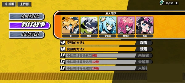 2、此外还有羁绊冒险故事,其进度会随着相关角色的成长而推进,不断解锁各类隐藏剧情,这也是玩家培养这些CP角色的动力之一。当然,小队羁绊对玩家战斗能力的提升最为关键,等级越高,获得的对应加成也越丰厚,只是需要玩家逐步培养和提升。