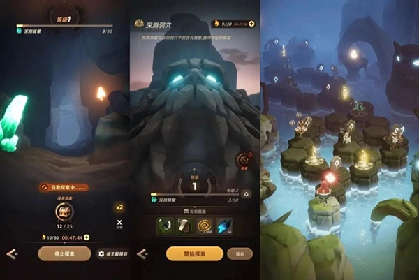 与此同时,其UI设计也相当精致,除了宝箱元素外,大部分内容都与整体美术风格十分契合;最令人惊艳的或许是场景转换时的镜头运用——每当玩家开启探险,游戏便会通过一连串极具主观视角的穿梭镜头,将玩家引导至探索区域,代入感十足。
