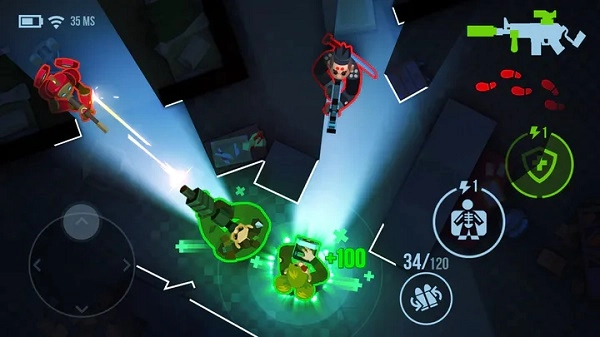 游戏采用俯瞰视角,玩家可通过左手摇杆操控角色移动,右手按键则用于执行换弹、治疗等功能。整体操作较为简便,对新手十分友好。