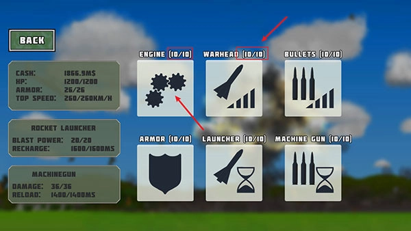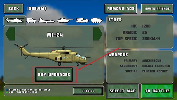 3、购买成功后,点击【BUYUPGRADES】即可进行武器升级