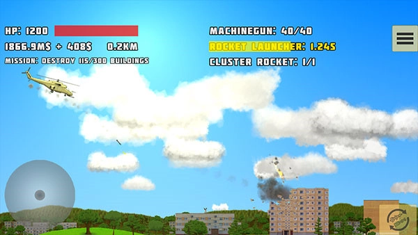 而且《完全毁灭》里的地图场景也相当多样化,各位玩家不仅能自由探索,还能驾驶坦克或直升机在横版地图中对敌方目标建筑、物体等实施毁灭性的轰炸与摧毁;也可以不断投掷炸药、使用各类武器给城市留下打击性的伤痕,在超爽的爆炸画面和场景音效中,于这片虚拟的现实天空里掀起一场惊涛骇浪。除此之外,这款《完全毁灭》还提供了超过35个精心设计的任务关卡供你逐一挑战,完成后能解锁更强大的武器、额外的属性加成、技能乃至不同的成就,从而直观感受导弹飞向建筑和敌人的轨迹,目睹各种程度的爆炸与破坏,带来身临其境的强烈震撼感!