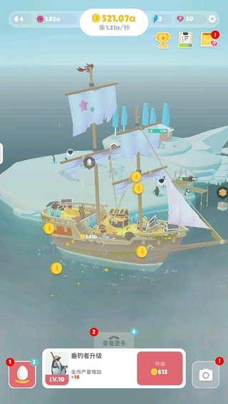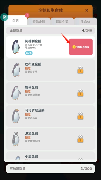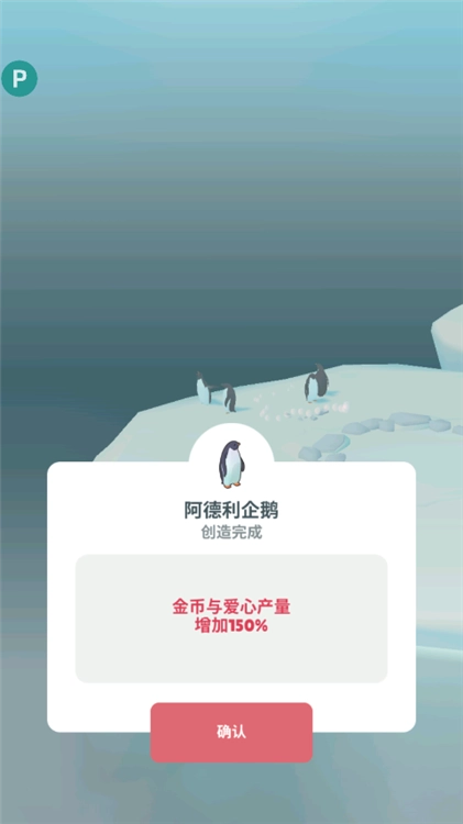 3、阿德利企鹅已创造完成,金币和爱心的产量提升150%。