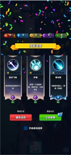 2、当最上方的进度条填满后,玩家即可进行升级;升级时可以选择一项技能,以辅助自己的游戏进程。