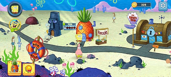 和海绵宝宝、蟹老板、章鱼哥、珊迪还有派大星一起,去探索全新的独家故事吧。随着故事情节的推进,就能解锁新的关卡。