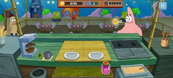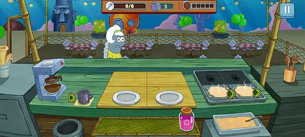 4、玩家将化身海绵宝宝,协助蟹老板打理餐厅,要随时准备好为顾客送上可口的美食!