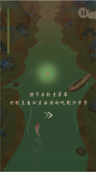 1、按节奏轻点屏幕控制主鱼公左右游动吃到沙棠果。