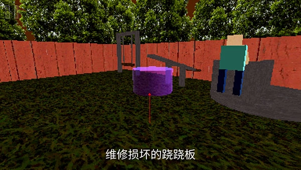 3、你扮演公园管理者,职责是维修操场的损坏设施,可自由探索场景并寻找所需工具。