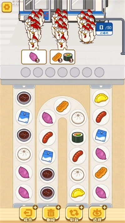 干饭哪家强?闪烁的传送带不停运转,上面摆满了各式各样的道具,快速移动着。时间一点点过去,你需要寻找三个相同的道具。只有当三个相同的道具碰到一起,并且你迅速点击它们,才能消除,获得分数,顺利进入下一关,继续你的消除之旅!