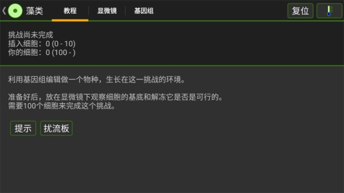 1、进入细胞实验室后,你们就能开启一项挑战了——比如选择【藻类】,这样就可以正式开始啦。