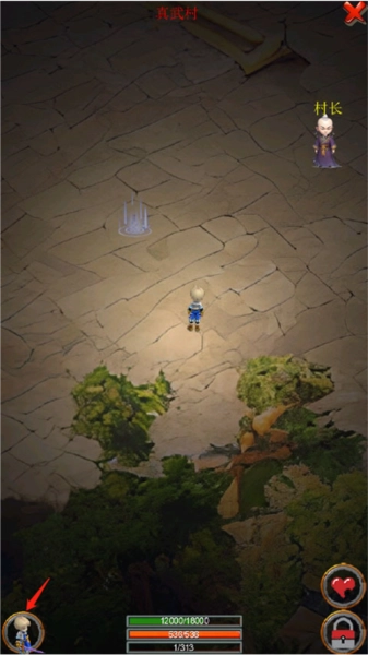 2、移动人物往上方走,来到村长身边