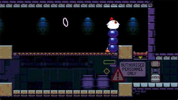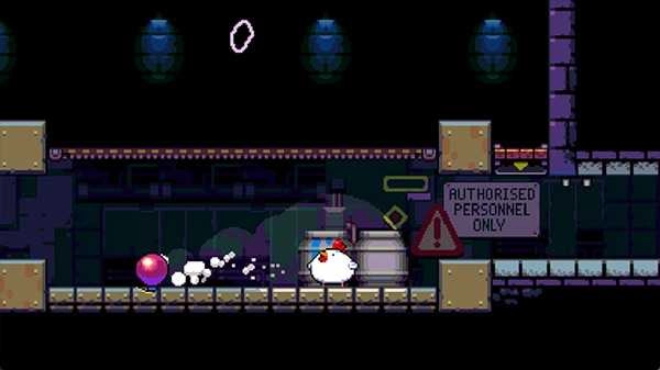 Nitrome家的像素作品向来都是高质量精品,《炸弹鸡》自然也不例外。游戏背景设定很有意思:BFC公司(建议和KFC来场“对决”)凭借引入蓝色辣酱一跃成为快餐行业的佼佼者。某天,一枚鸡蛋因蓝色辣酱的影响,孵化出了一只会下炸弹的肥鸡,这只鸡就此踏上了逃跑之路。闯关过程中,还能看到猪笼草工人的日常,以及他们留下的文字信息。游戏给人的第一印象,来自开场LOGO展示的那盒视觉效果极具冲击力的蓝色辣酱炸鸡套餐,满满都是开发商的“恶趣味”XD。此外,游戏里还能看到马里奥的元素,比如可上下连通的水管、踩踏怪物等经典设定。